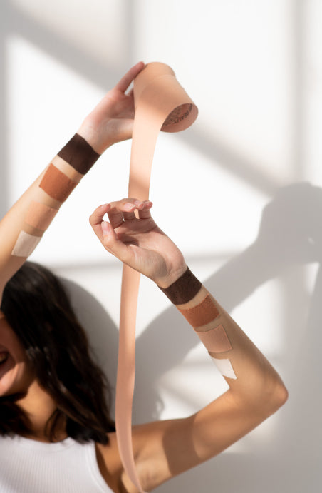 CAUTION: NOOD adhesive products are not for everyone or every skin type. It is of the utmost importance to take caution and care while using the Game Changer and Shape Tape adhesive products. Use of adhesive products like NOOD’s may cause irritation or skin issues in some people, including potential stripping, tension injuries, non-allergic or allergic contact dermatitis, folliculitis, and skin changes or injury, including those due to trapped moisture. If you have any existing skin conditions or skin sensitivities, including skin allergies to adhesives, have cancer or are pregnant, breast-feeding, or lactating, or have any other medical condition, disease, or other concerns using any of our products, consult a healthcare provider before use. Do not place product over existing lacerations, abrasions, broken skin, sunburnt skin, or other skin wounds. This product is not intended for medical use and does not serve as a substitute for medical or professional care of any kind. For external use only. If you are or may be allergic to adhesive, acrylic, elastane or similar products such as band-aids (plasters), do not use NOOD adhesive products. Carefully review and follow all instructions contained in the NOOD safety guide and that which accompany your product. Improper application or use of the product in any way that does not comport with these instructions, including overstretching, and other failures to adhere to the safety guide, product instructions, and any cautionary statements, may result in skin irritation, a rash, blisters, abrasions, discomfort, or other physical injury. Removal of the product can cause a slight pulling of the skin, a burning or stinging sensation, and/or redness or similar changes in pigmentation. Keep out of the reach of children. Do not wear longer than instructed and allow a minimum of 72 hours between usage. Do not wear on excessively hot days or subject yourself to the sun for long periods of time, as this may cause your skin to overheat and can lead to skin irritation and injury. Stop use immediately if you experience itching, redness, irritation of the skin, burning, an allergic reaction, or any other discomfort while using the product and contact your healthcare provider. If you believe you have a medical emergency or any condition requiring immediate attention, call your doctor or 911 immediately.