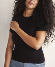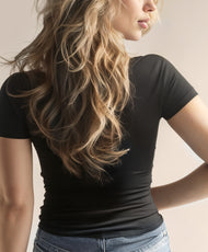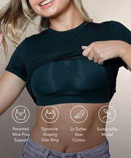 Feels like a hug, looks like a head-turner. Introducing the Little Black Tee. Our sustainable modal fabric t-shirt is softer than your Sunday morning lie-in, with built-in, wire-free 3D support that shapes the girls without the squeeze. It's the perfect blend of comfort and confidence! Who says you can't have it all?